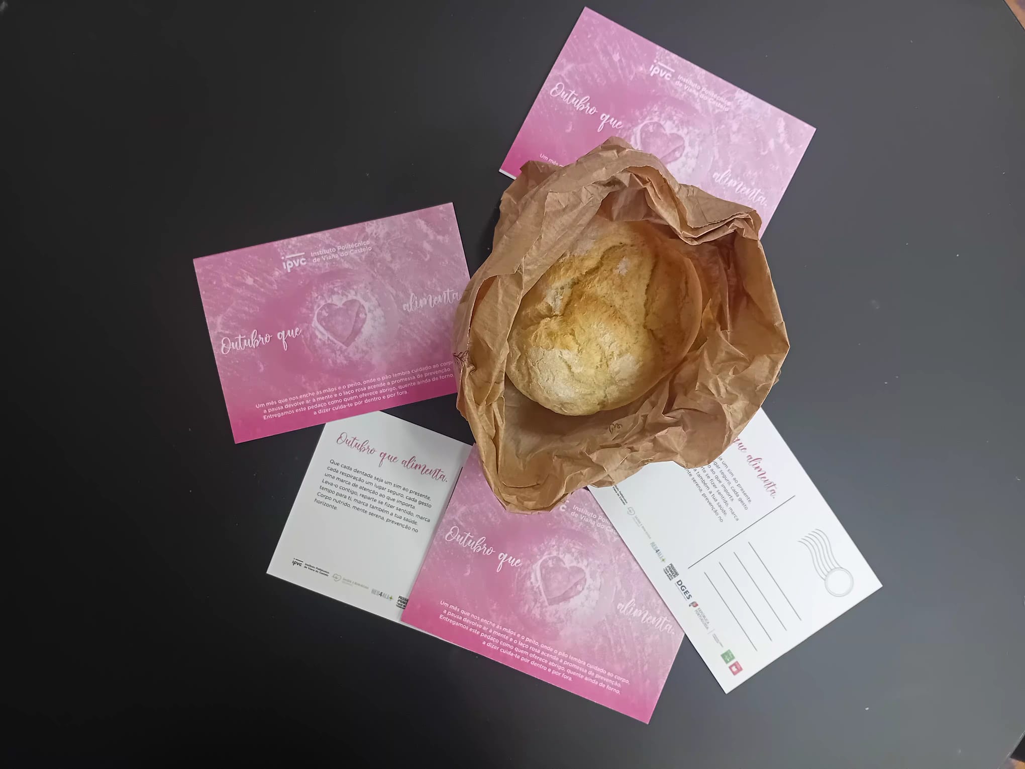 “Um mês que nos enche as mãos e o peito, onde o pão lembra cuidado ao corpo, a pausa devolve ar à mente e o laço rosa acende a promessa de prevenção. Entregamos este pedaço como quem oferece abrigo, quente ainda de forno, a dizer cuida-te por dentro e por fora”, podia ler-se no postal que acompanhava cada pão.