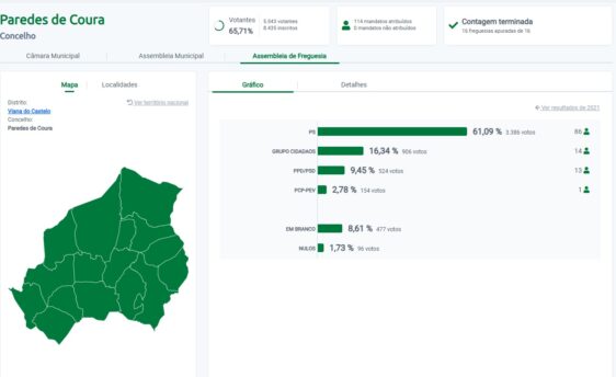 PARTILHAR Acessibilidade T+ T- Tiago Cunha, candidato do PS, venceu as eleições autárquicas em Paredes de Coura com 61,39% dos votos. Partido Socialista elege assim quatro vereadores. O PSD ficou em segundo, com 25,74% dos votos, elegendo um vereador. App Geice Fm